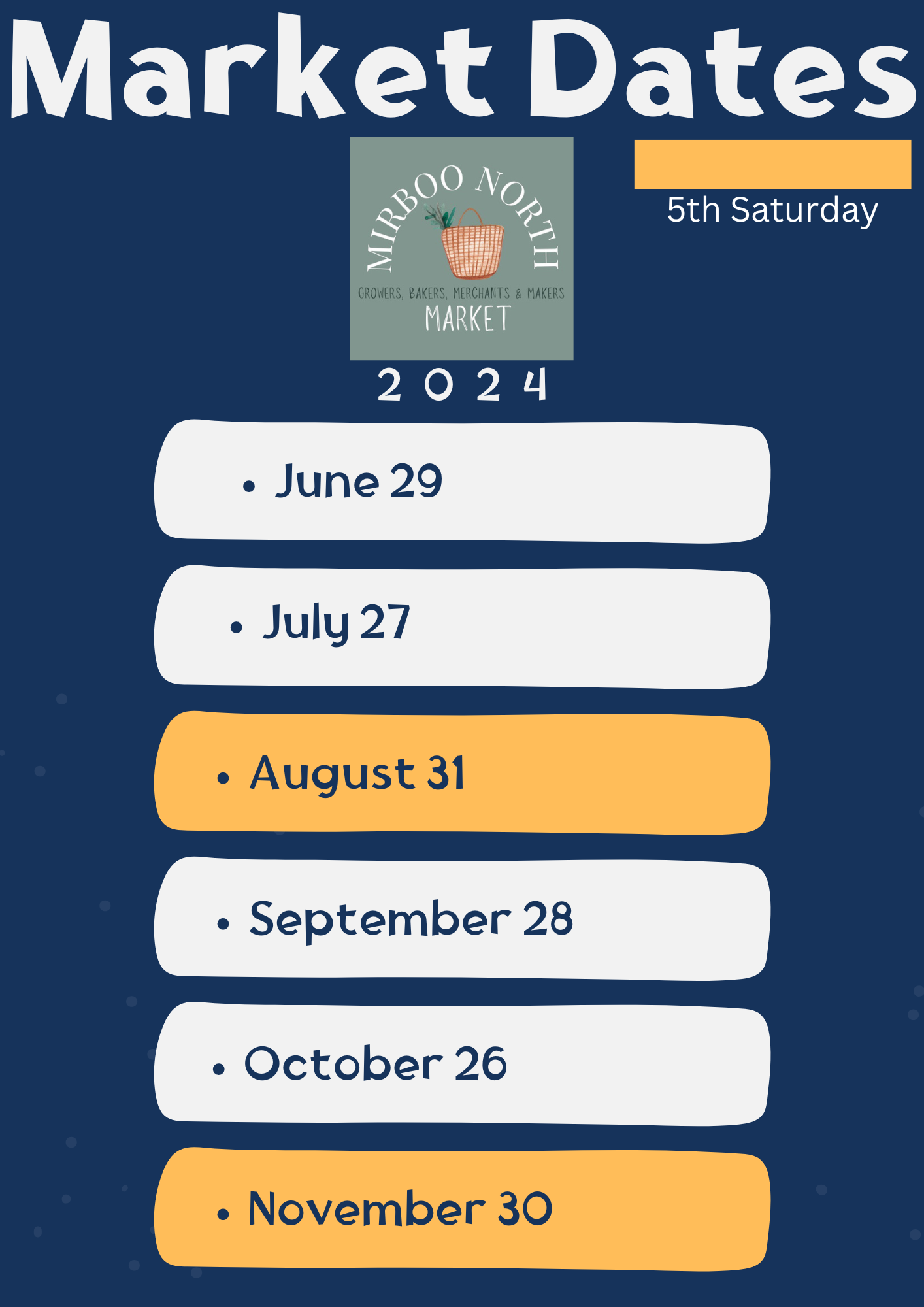 Given the market operates on the last Saturday of any month, the last Saturday in December is always between Christmas and New Year. Our experience has been that most people are out of town visiting relatives at this time, so the market was deemed not to be viable. Furthermore, our stall holder community have families as well - and are usually in the same boat in terms of family commitments. What we do have though, is Christmas in the 'Boo, another MCDI-auspiced event, which occurs in the first week of December. You can find our more info on this seasonal twilight market here.